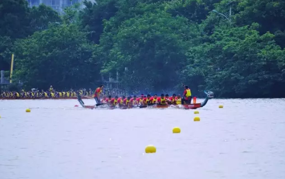 隨著裁判員一聲令響,隊(duì)員們積聚已久的力量瞬間迸發(fā)出來,向著終點(diǎn)全力沖刺。鼓手們縱身一躍,雙槌齊下,節(jié)奏十足的擂鼓聲回蕩在河面;劃手們奮勇?lián)]槳,金龍呼嘯,振奮人心的呼喊聲響徹云霄。槳起槳落間,水花四濺,這是一次速度與激情的角逐,亦是一場戰(zhàn)略與戰(zhàn)術(shù)的較量。